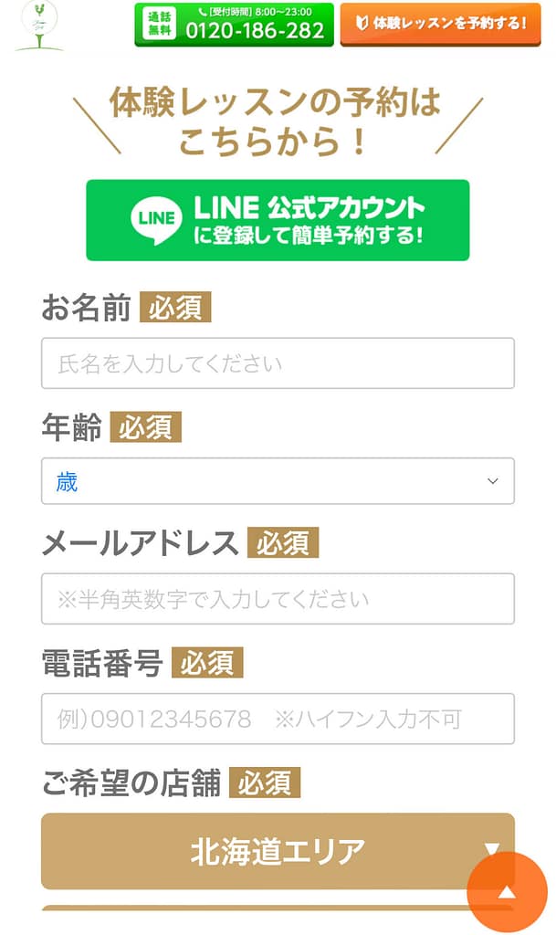 体験レッスンの予約方法については次の章で解説します。