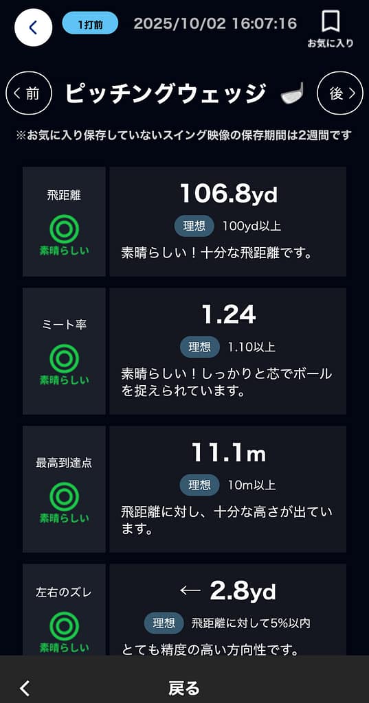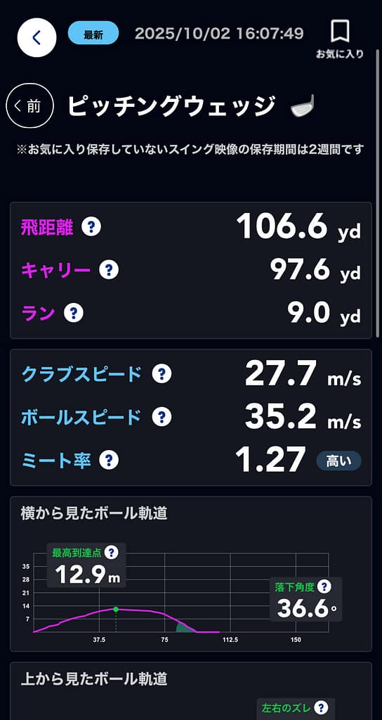 以下の通り、自分の打球データやレッスン動画は自分のスマホでも見ることが可能です。