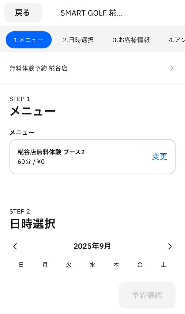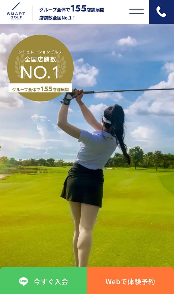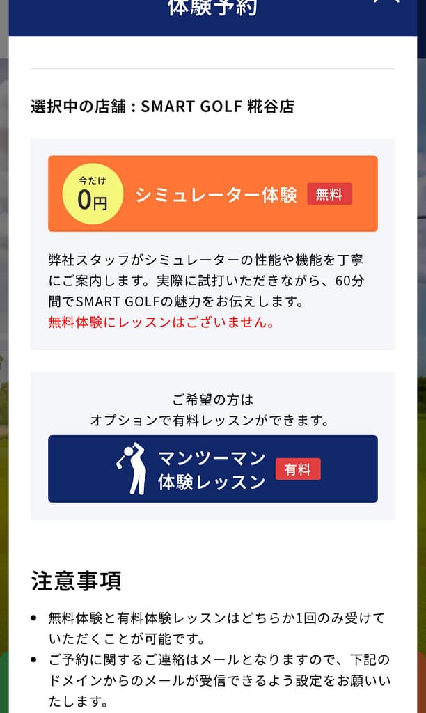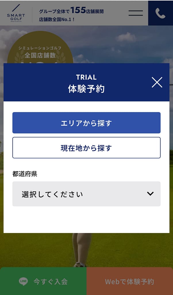 スマートゴルフ公式サイト下にある「Webで体験予約」を押します。