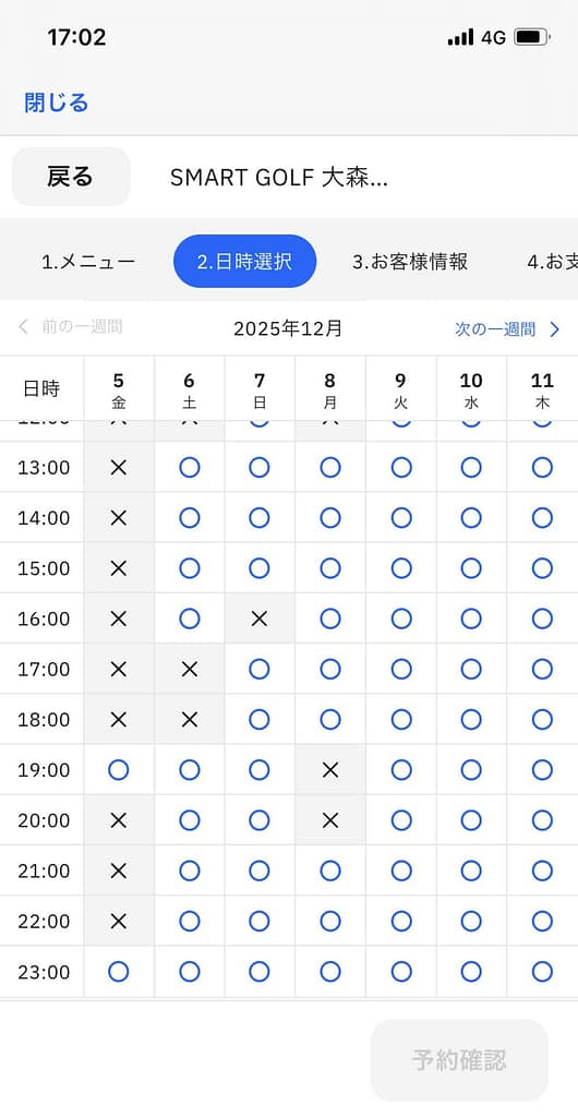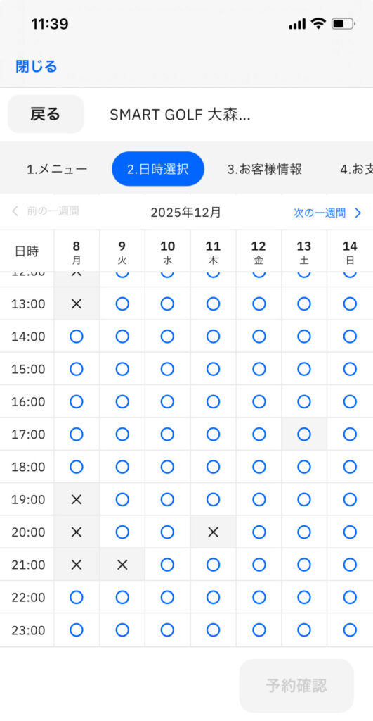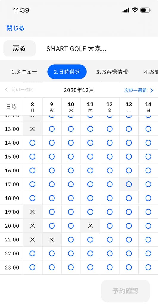 ということで、スマートゴルフ大森町駅前店の打席予約表を確認してみました。