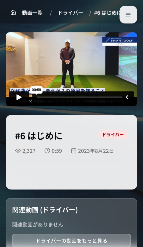 以下の通り、自分の打球データやレッスン動画は自分のスマホでも見ることが可能です。