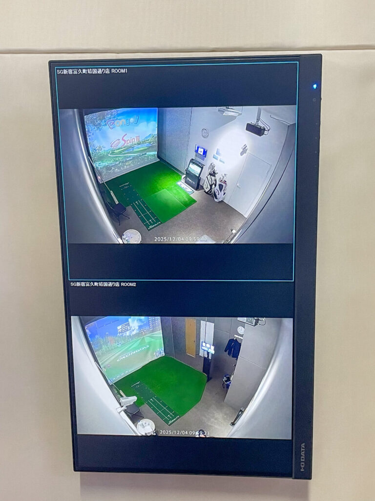 スマートゴルフは予約と予約の間に隙間時間がないので、前の人が部屋にいるかどうか確認してから入室します。